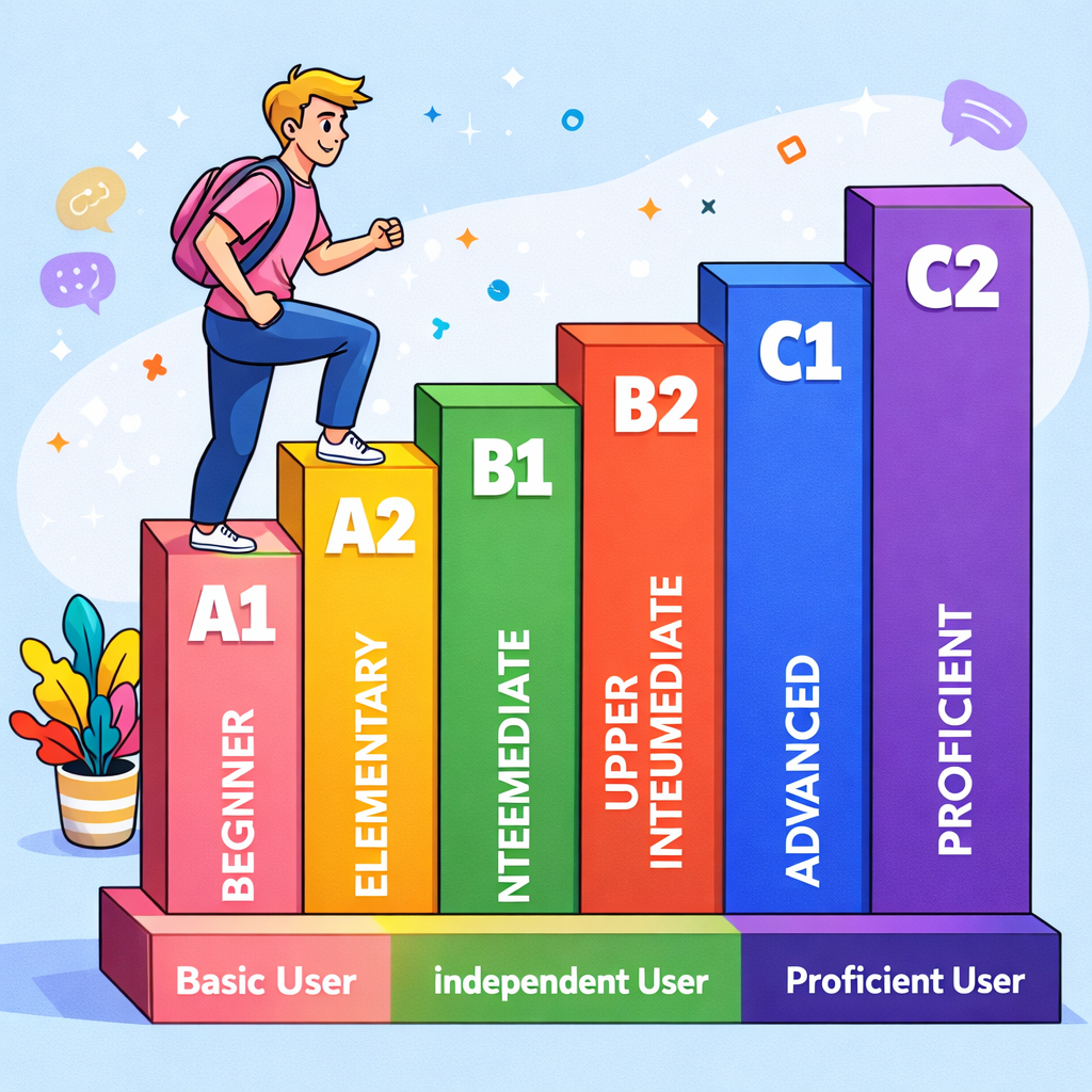 Essas siglas vêm do CEFR (Common European Framework of Reference for Languages), um padrão internacional que organiza os níveis de inglês de forma clara e comparável no mundo todo.